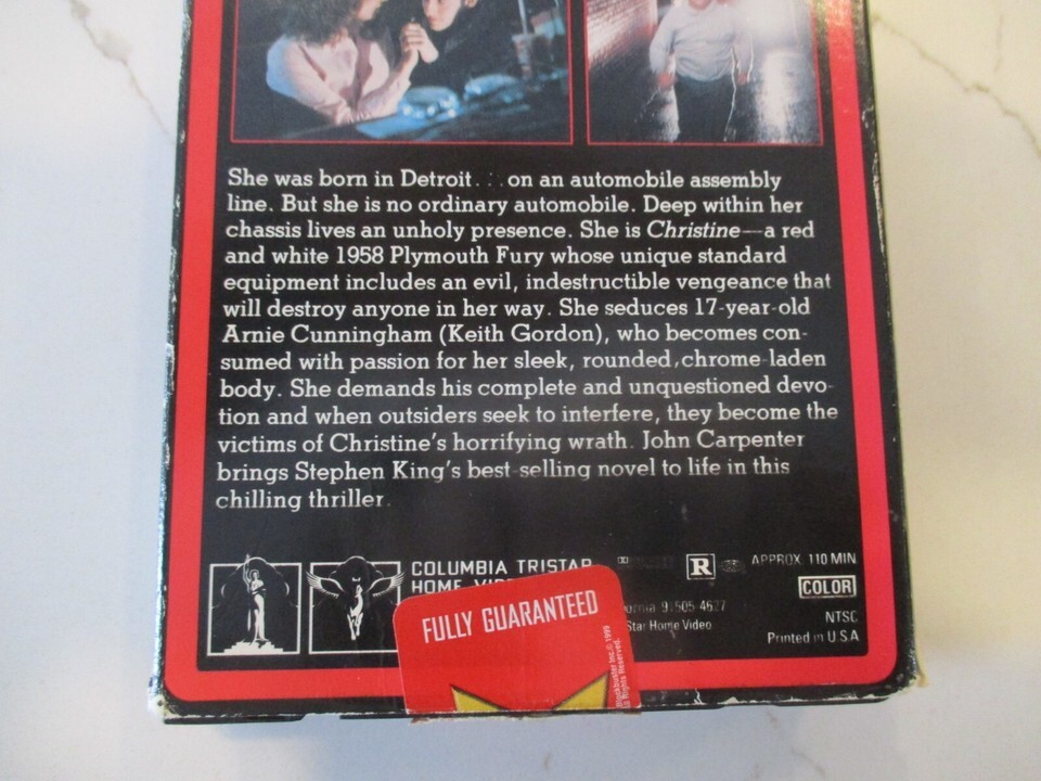 1991 John Carpenters Christine VHS horror home video 043396601611 red border