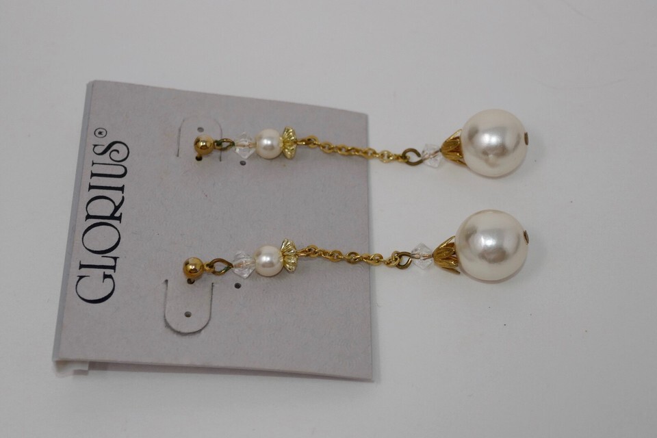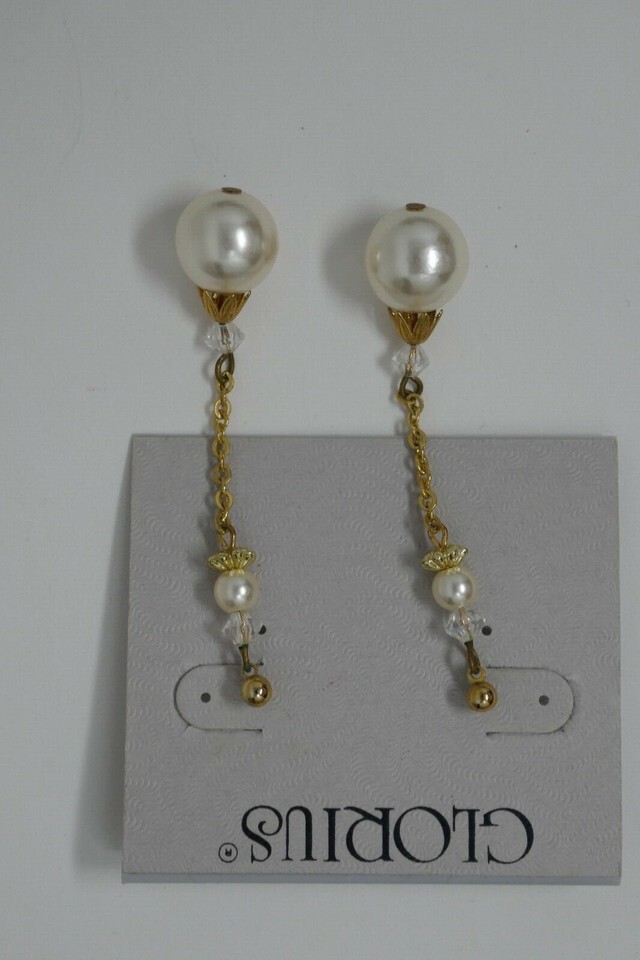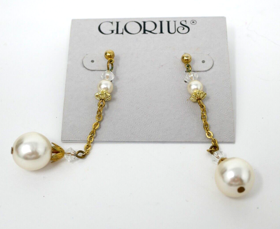 Up for sale is a pair of Glorius Gold Tone Faux Pearl Earrings. These measure approx. 2.5" long.