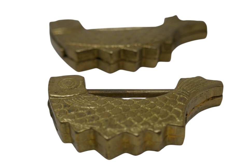 Vintage Brass Chinese Decorative Carp Koi Luck Fish Padlocks Key Locks NO KEYS