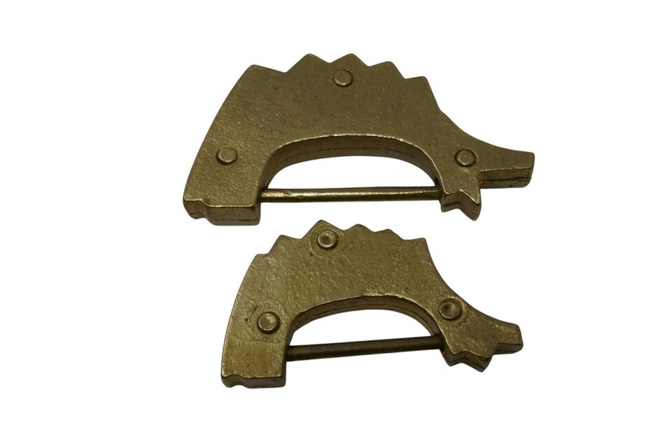This is a set of two vintage brass Chinese decorative padlocks, specifically designed as key locks. These padlocks are unique and intricately crafted, the larger lock measures approx. 2.75" long and the other is 2.25" long. While these do not come with keys, they can still serve as decorative pieces or collectibles. Perfect for adding a touch of vintage charm to any space, these padlocks are a whimsical and eye-catching addition to any collection.