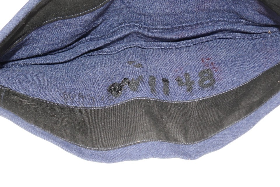 This is a vintage US Air Force USAF Cap in blue. The hat has minimal wear with numbers written inside. It is a nostalgic piece that symbolizes the Air Force force and is a unique addition to any military collection.