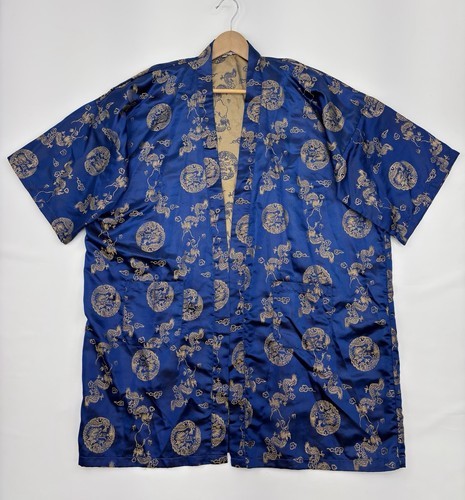 Unveil a touch of vintage elegance with the Double Peach Jacquard Chinese Kimono Robe, a luxurious addition to your wardrobe. This measures approx. 27" from pit to pit and 51" long with little wear. Whether you're looking to enhance your daily lounging experience or seeking a distinctive piece for special occasions, this kimono robe promises to be a versatile and cherished garment in your collection.