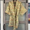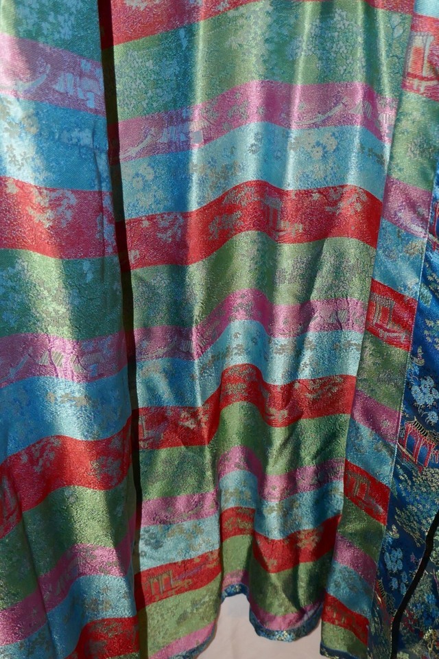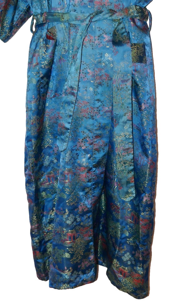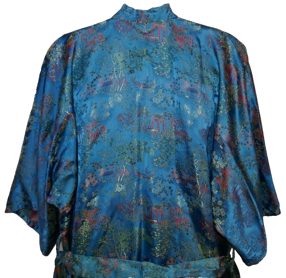 Double Peach Vintage Teal Jacquard Chinese Kimono Robe Size M