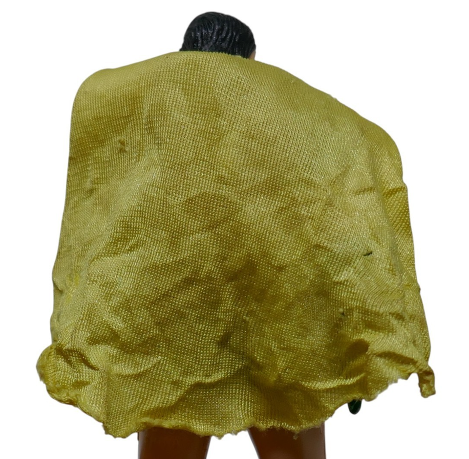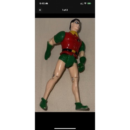 The Toy Biz Super Heroes Karate Chop Robin Action Figure with Cape is a vintage collectible featuring the character Robin from the Batman franchise. Made of plastic and standing at 4.25 inches tall, this action figure is a must-have for fans of the Batman and Robin TV show. The cape does have a few small holes and he has some paint loss to his hair.