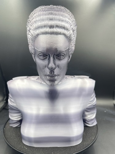 ? This pinhead edition features a The famous Frankenstein Bride carrying Frankie in her arms.