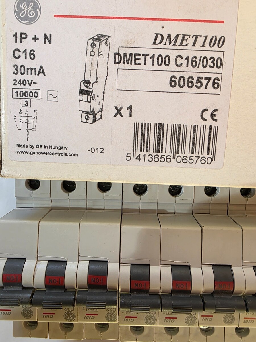 GE Miniature Circuit Breaker Lot – G101 C32 (10 Pcs) + DMET100 C16/30mA (2 Pcs)