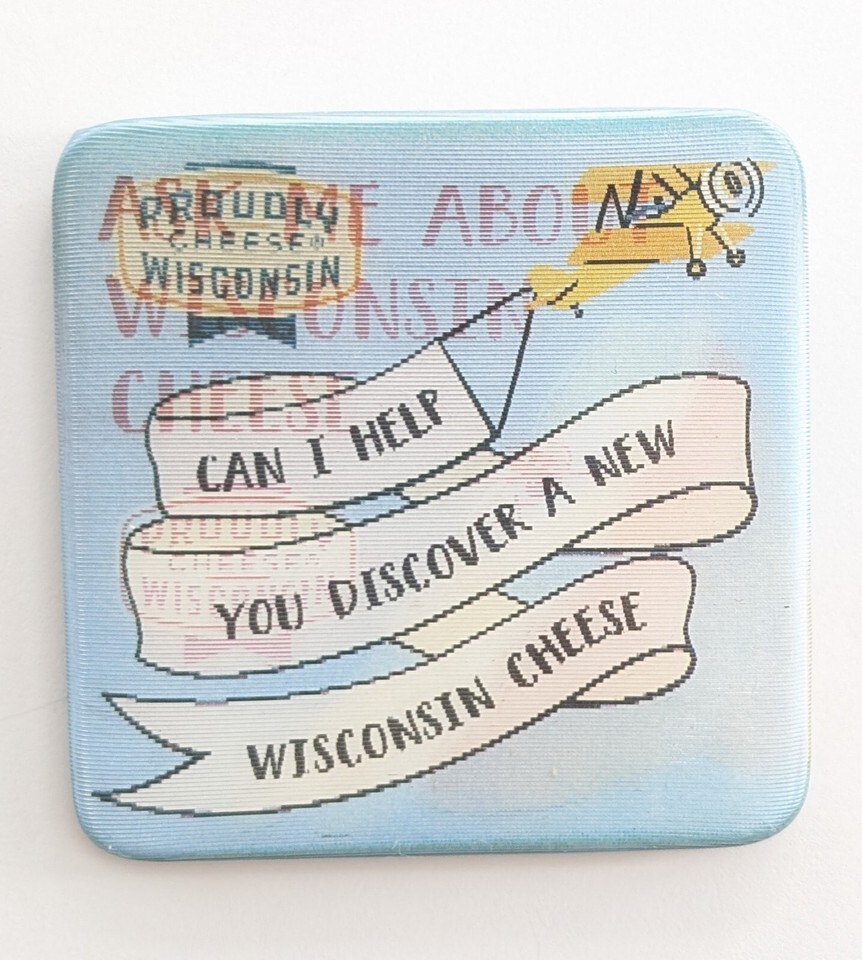 VTG Proudly Cheese Wisconsin Holographic Button Pin WI State Advertise Blue...