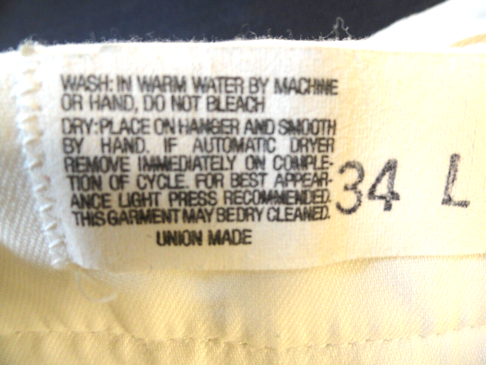 1965 USN U.S. NAVY 60's Flying Cross Certified Twill White Military Pants 34L