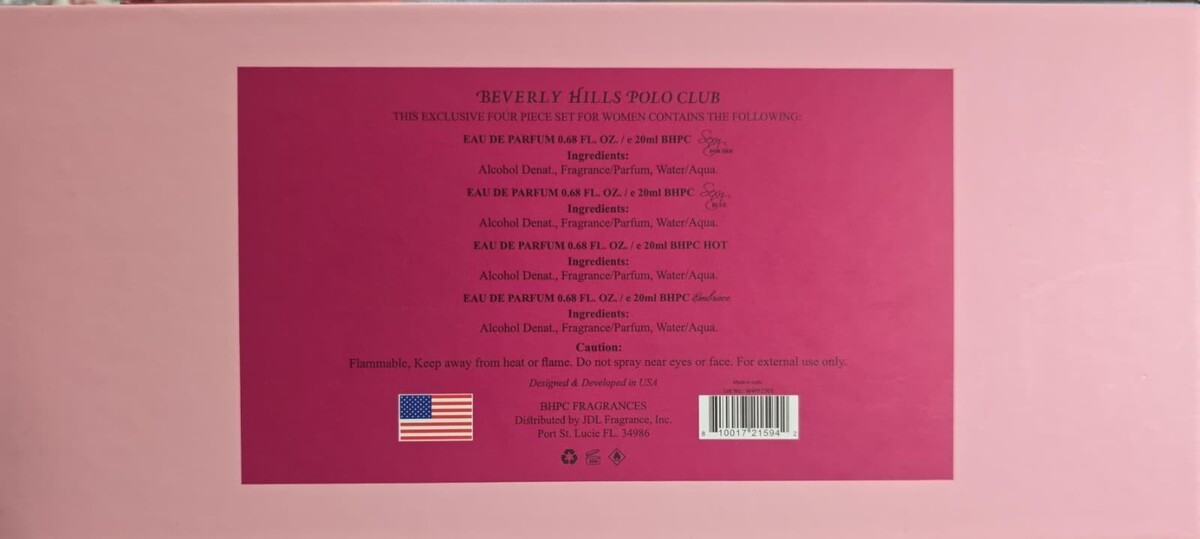 Beverly Hills Polo Club Women's Perfume Gift Set - 4 Piece Pocket Size Eau De Parfum Collection,0.68 oz Each
