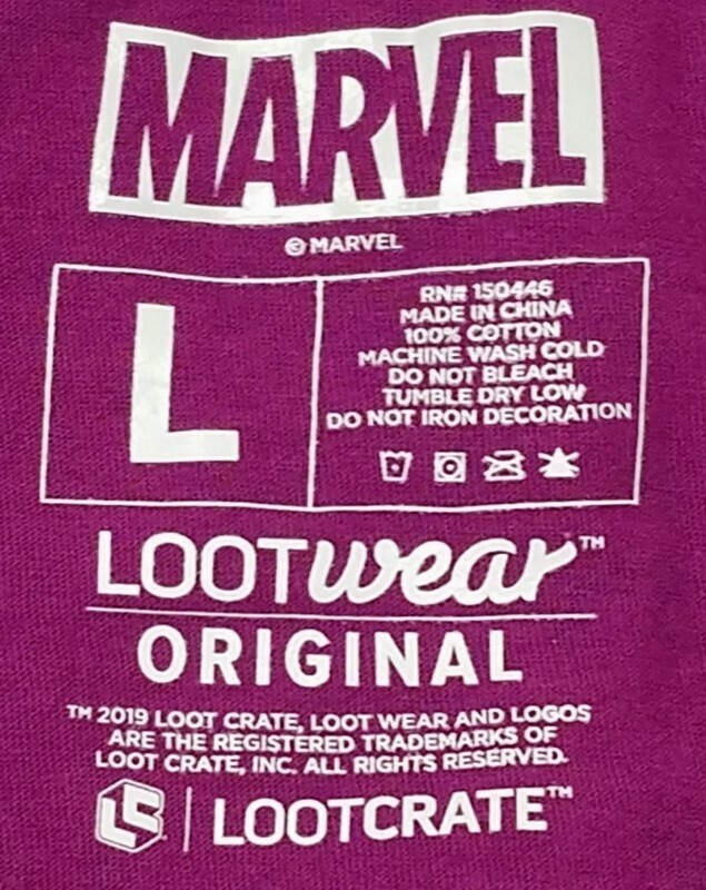 Marvel Loot Crate Thanos Infinity Gauntlet Pocket T-Shirt Womenโs L Purple 2019