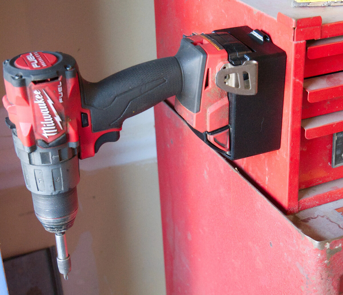The integrated magnetic base lets you attach your battery or tool to any steel surface ? perfect for keeping gear off dirty workbenches or safely mounted on tool carts.
