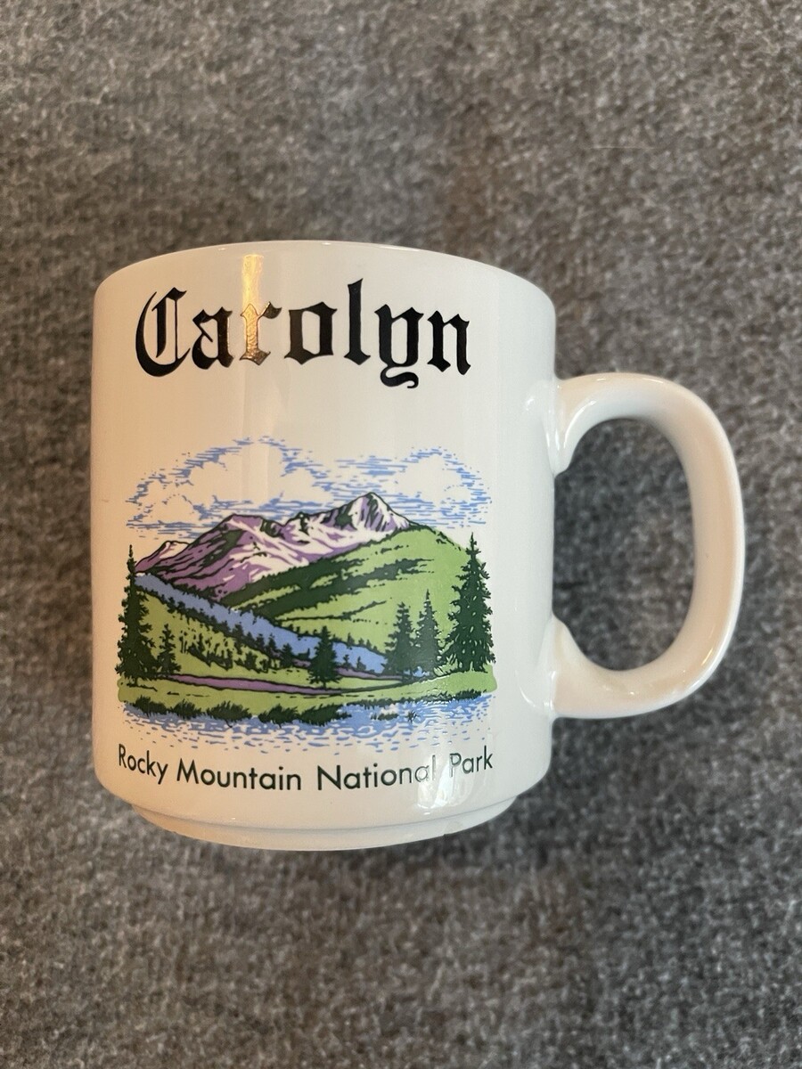 VTG Rocky Mountain National Park Souvenir Coffee Mug “Carolyn” Papel USA 91605