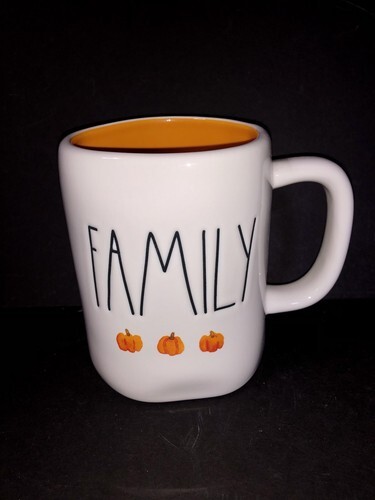 The Rae Dunn Family Pumpkins Coffee Tea Fall Mug Cup is a charming and festive addition to your kitchen or dining area. This 16 oz ceramic mug features a solid orange interior with a multicolor pattern of pumpkins and family, perfect for celebrating the fall season. With a farmhouse style and a capacity for 16 fl oz, this round mug is both dishwasher and microwave safe for convenient use. At 4.5 inches tall and 3.5 inches wide, this happy and quaint coffee mug is a must-have for those who enjoy cozying up with a cup of hot tea or coffee.
