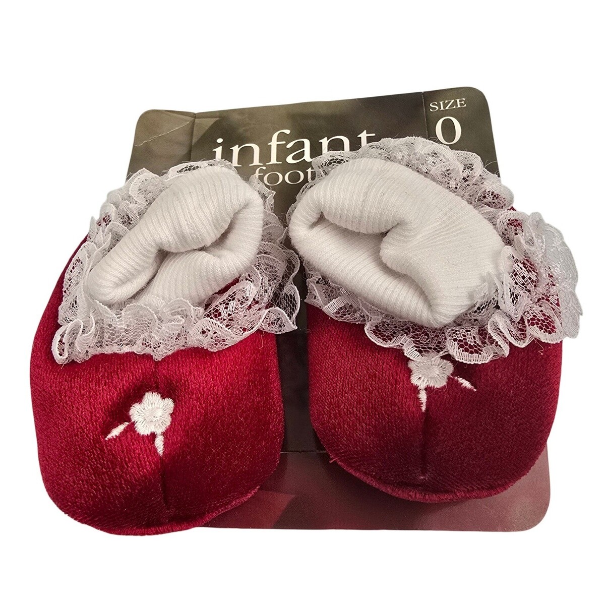 Infant Footwear Baby Booties Shoes Red Velvet Lace Trim Size 0 Newborn VTG