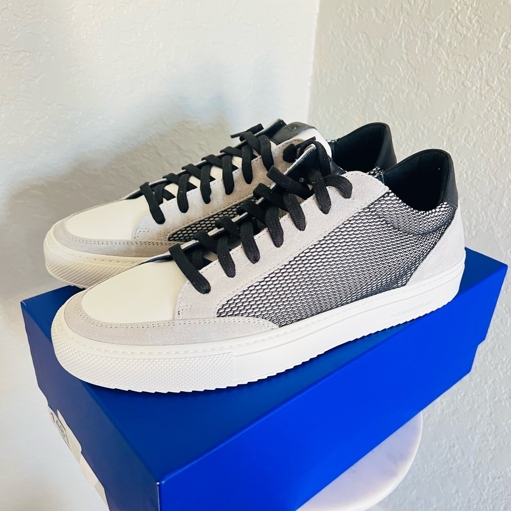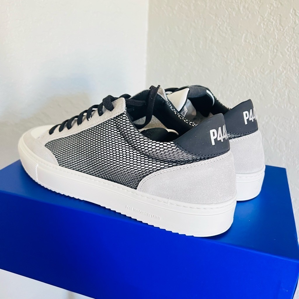 P448 Men's Soho Sneaker, Italian Leather, Black/Gray, Size 10.5, Euro 43, NWT