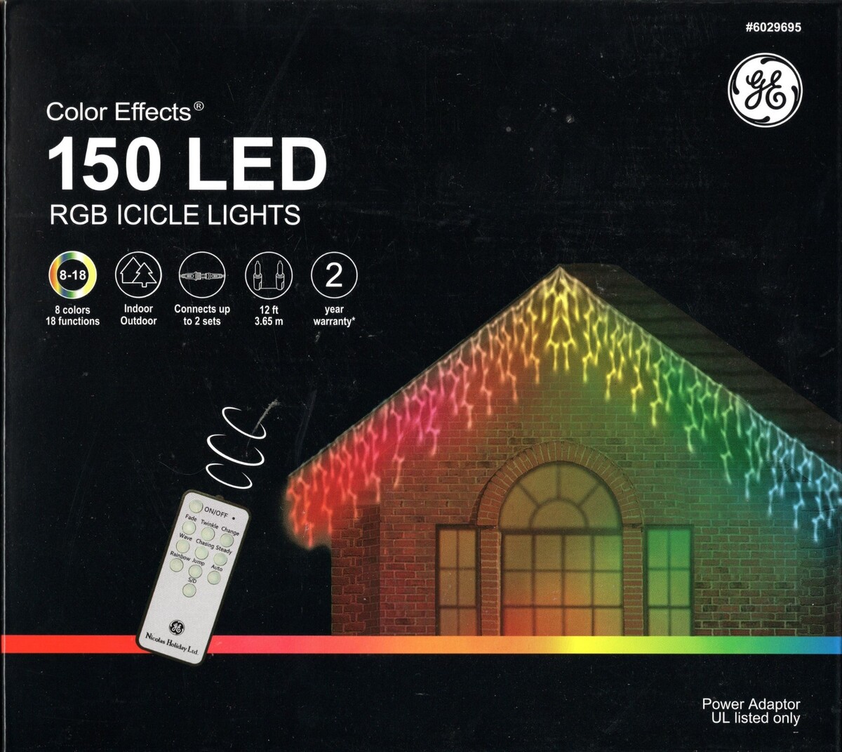 GE COLOR EFFECTS 6029695 150CT RGB ICICLE LIGHTS 12' 8-COLOR 18-FUNCTION - NEW!