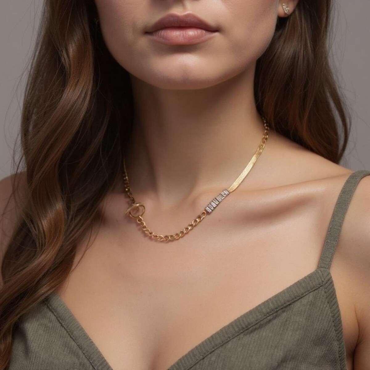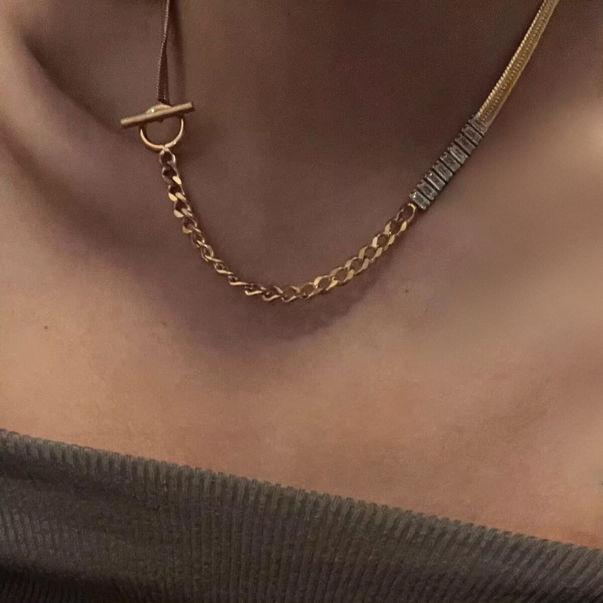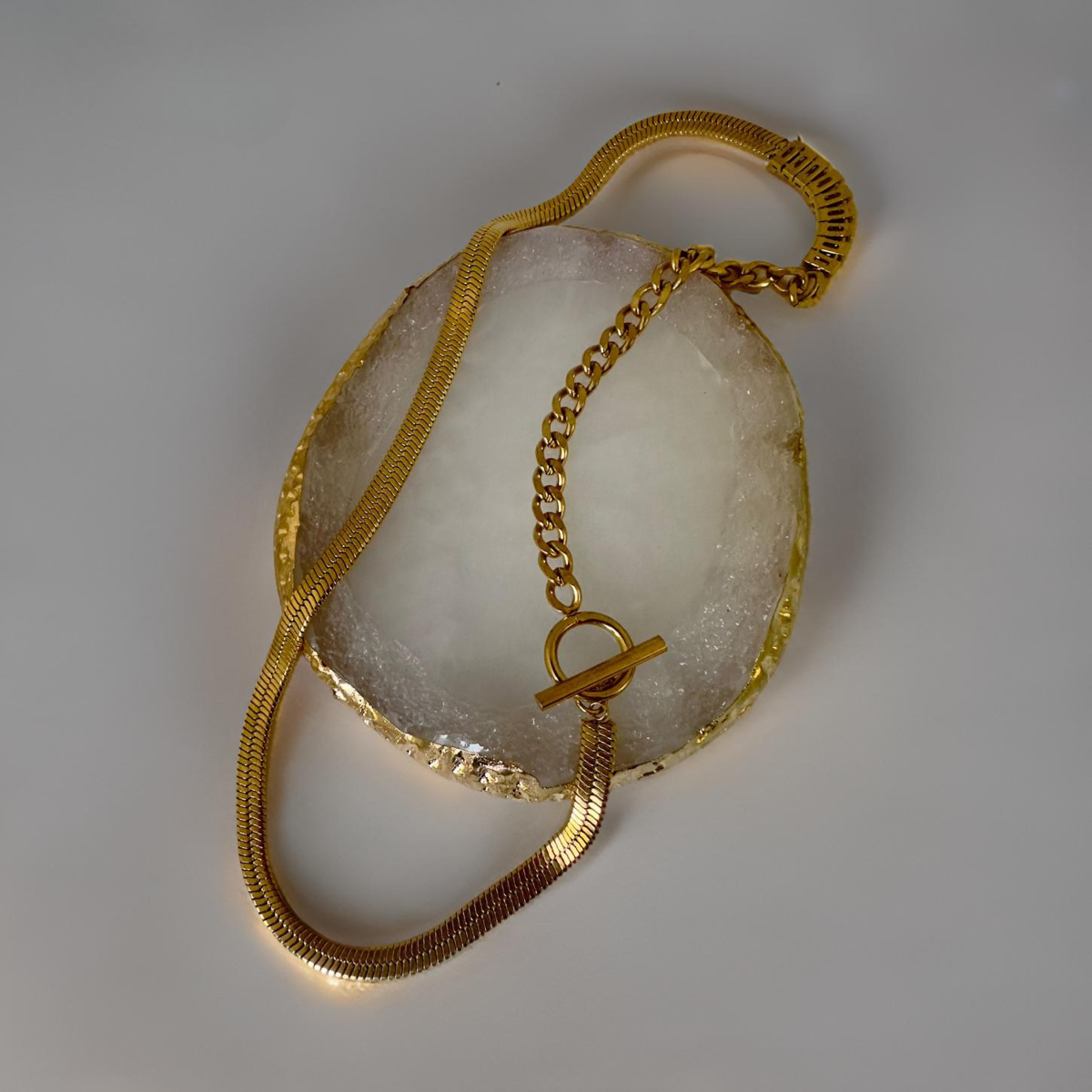 Women 18K Gold Plated Stainless Steel Buckle Cuban link chain mixed Snake Chain
