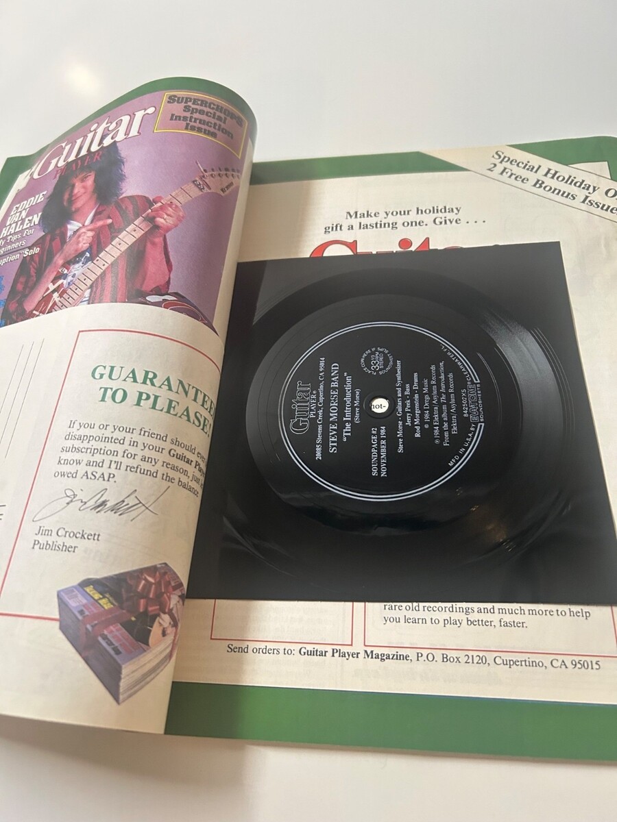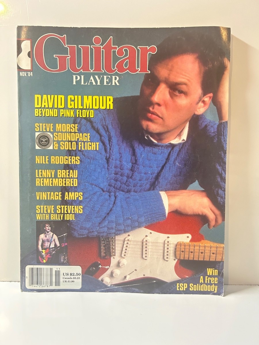 This vintage November 1984 edition of Guitar Player magazine features David Gilmour of Pink Floyd on the cover and includes a special Steve Morse record insert. Perfect for collectors and music enthusiasts, this issue also highlights influential artists like Nile Rodgers, Lenny Breau, and more.