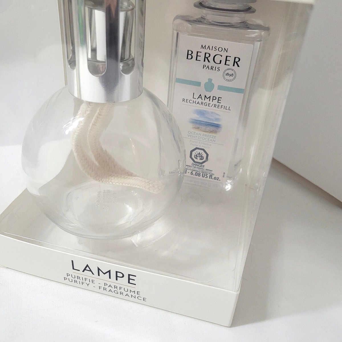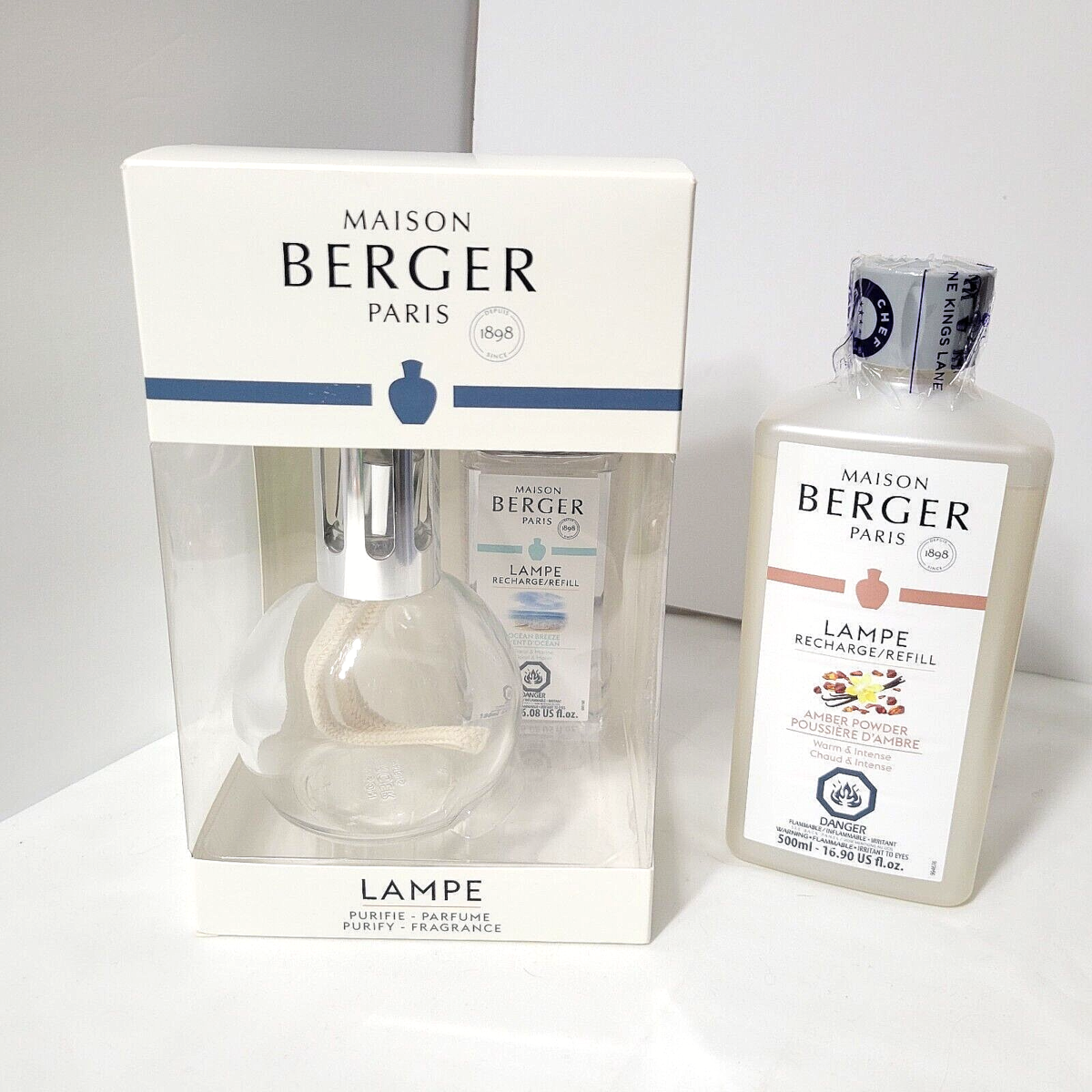 Maison Berger Bingo Clear Lampe with 250ml Ocean Breeze Set + 500ml Amber Powder