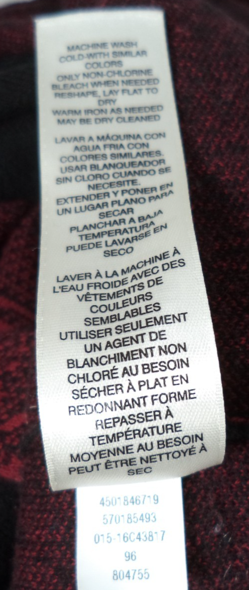 | Garment Care: |