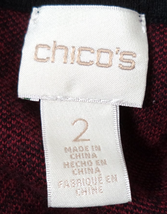 Chicos Women Size 2 US Large Open Front Jacket Cardigan Sweater Burgundy Black