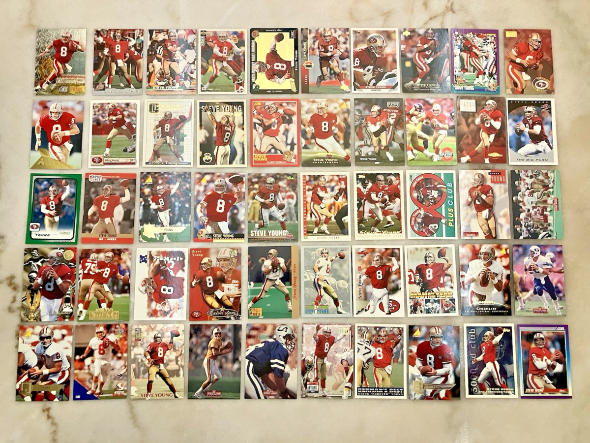 Lot of 50 Different STEVE YOUNG Football Cards 49ers HOF 1987-2024 - LOT C
