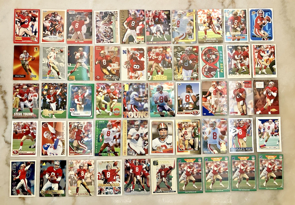 Lot of 50 STEVE YOUNG Football Cards 49ers HOF 1987-2024 - LOT G