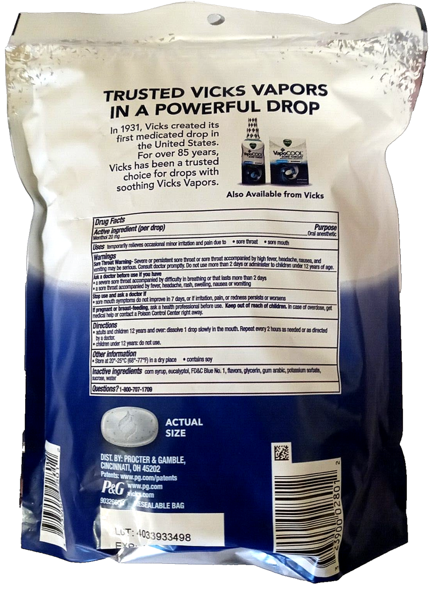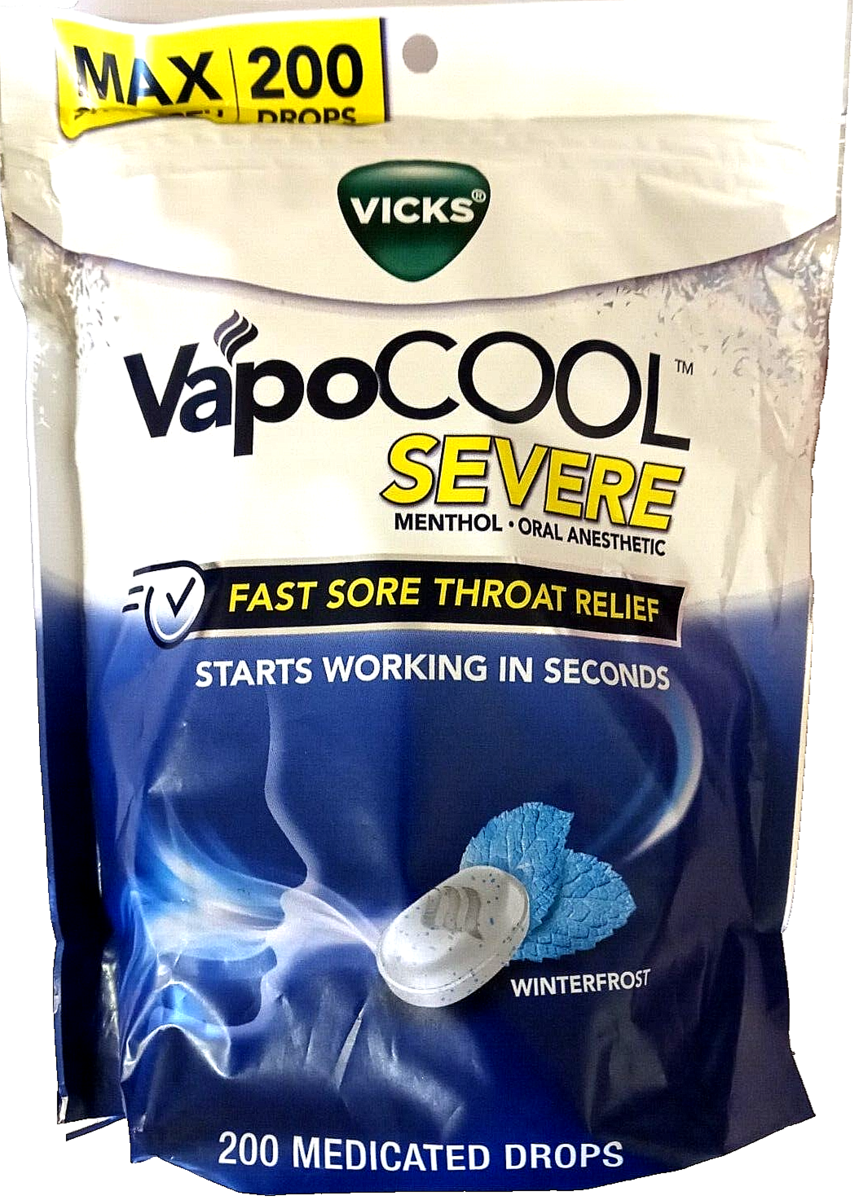 Vicks VapoCOOL Severe Menthol Oral Anesthetic 200 Medicated Drops EXP 02/2027
