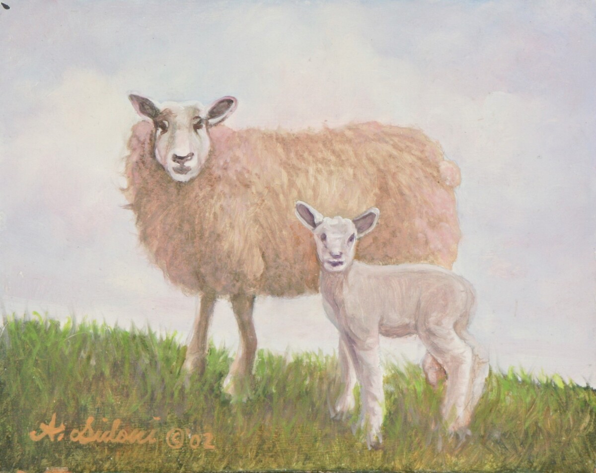 "Ewe With Her Lamb" By Anthony Sidoni 2002 Signed Oil Painting 14 1/2"x12 1/2"
