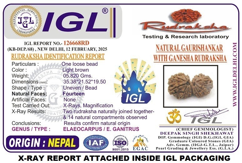 Rare 14 Mukhi Gauri Shankar Ganesha Rudraksha - 35.38 mm - Nepal - IGL Certified