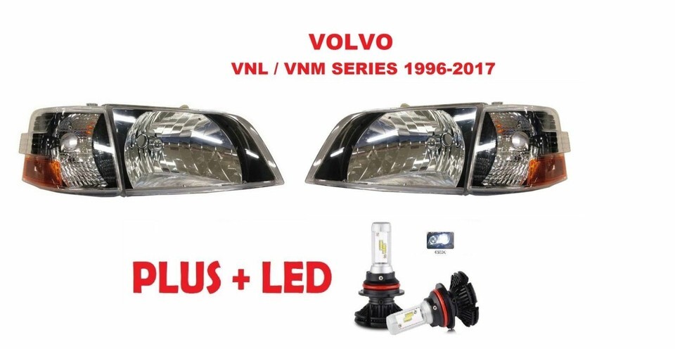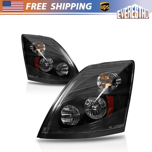 1998-2011 VOLVO VN VNL VNM Series Daycab Headlights BLACK Lens Corner Lamps LED