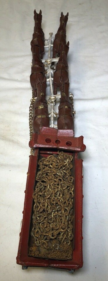 This vintage diecast toy is a must-have for collectors of Hubley brand toys. Made in the United States in 1940, this 6 horse drawn carriage is a rare find for those who appreciate cast iron toys. The intricate details of the carriage and the realistic design of the horses make this a great addition to any collection.