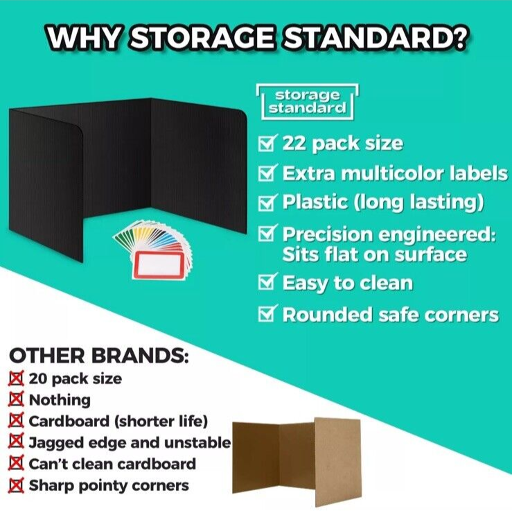 Keep your study space organized with this 22-pack of durable and waterproof plastic study carriers from Storage Standard. Perfect for students, these desk dividers are made of high-quality materials that ensure they will last through multiple study sessions. The carriers are easy to clean and maintain, making them a practical choice for any student.