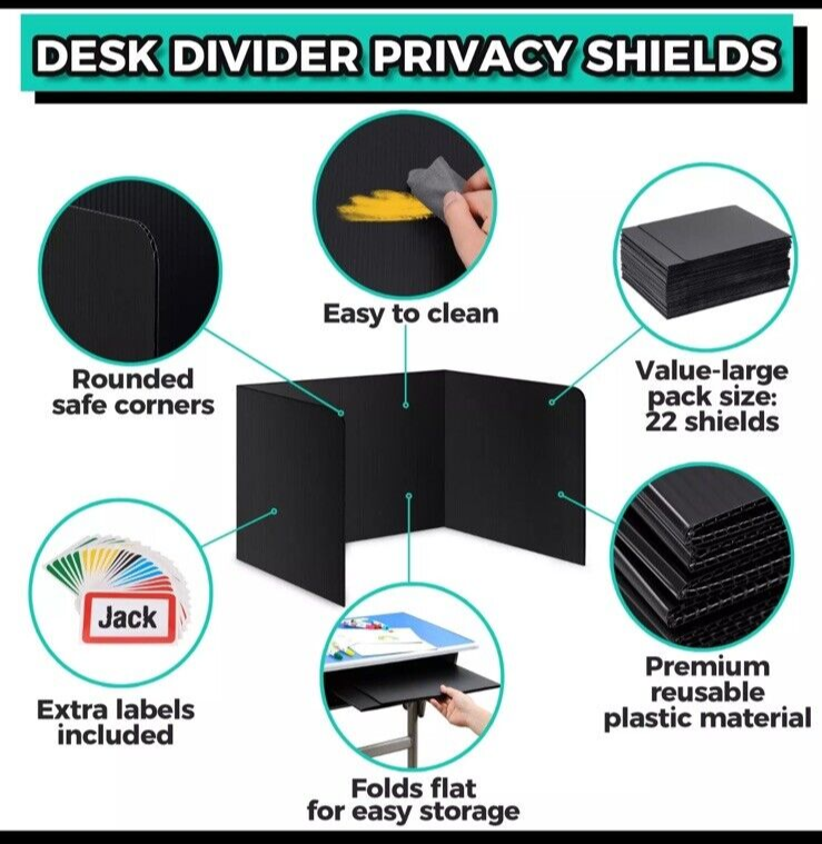 22-Pack Desk Dividers for Students - Durable & Waterproof Plastic Study Carre...