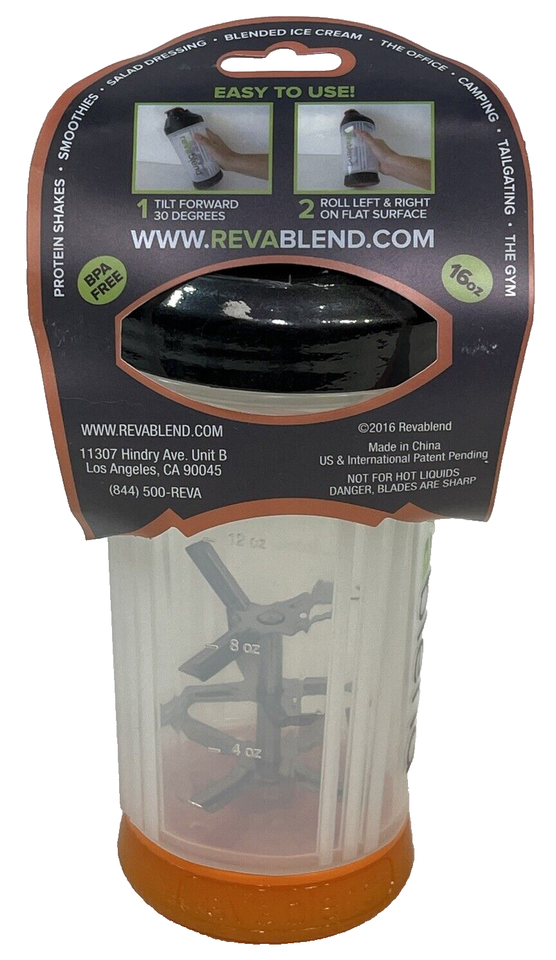 Introducing the Revablend Non-Electric Portable Blender, a versatile and compact kitchen tool perfect for anyone who loves to blend on-the-go. This handheld blender has a 16 oz capacity, making it perfect for making smoothies, protein shakes, and other healthy drinks. Its sleek orange color gives it a unique and trendy look that will surely catch anyone's eye.