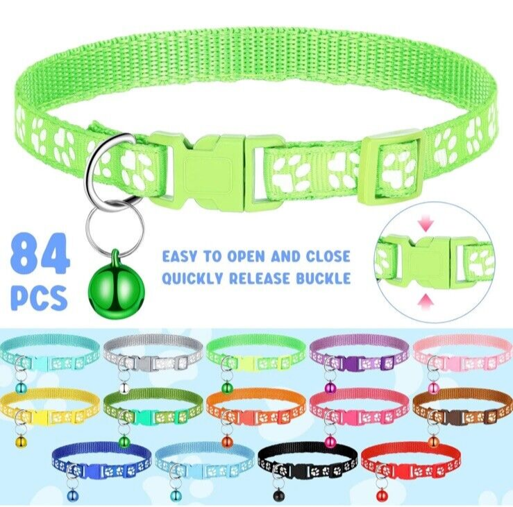 84 Pieces Colourful Nylon Adjustable Kitten Puppy Cat Collar Cute Bell Pet Tie