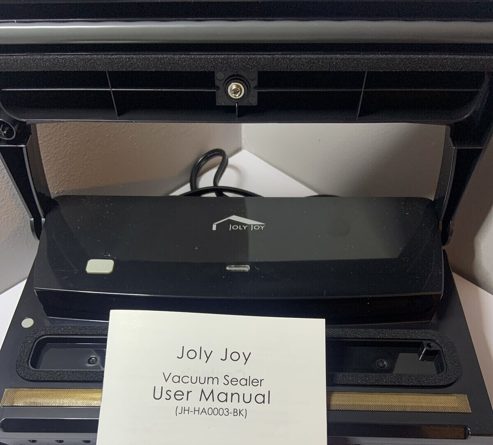 Up for sale is an electric vacuum sealer with a 100 W power source. This vacuum sealer, in the color black, is perfect for sealing food items to keep them fresh. The Jolly Joy model comes with a film bag and a manufacturer warranty for 1 year. Ideal for use in small kitchens, this appliance is a must-have for anyone who wants to save time and money by preserving food. Don't miss out on this opportunity to own a top-quality vacuum sealer!