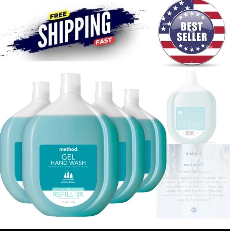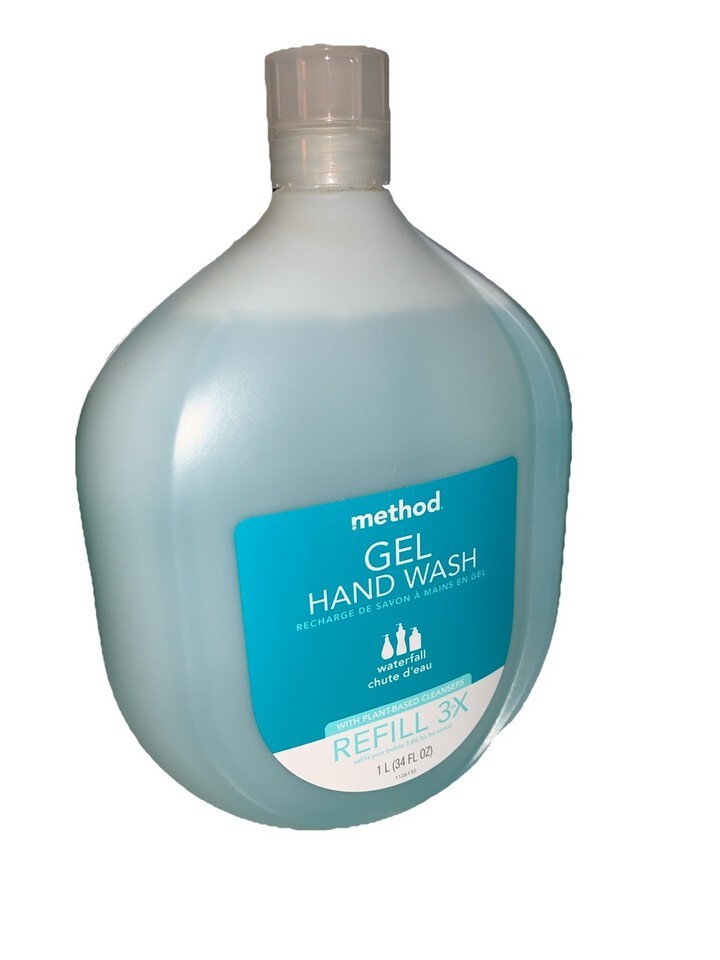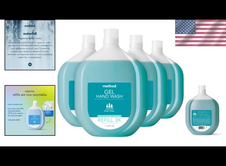 Gel Hand Soap Refill Waterfall 34 oz Pack of 4 Recyclable Biodegradable.