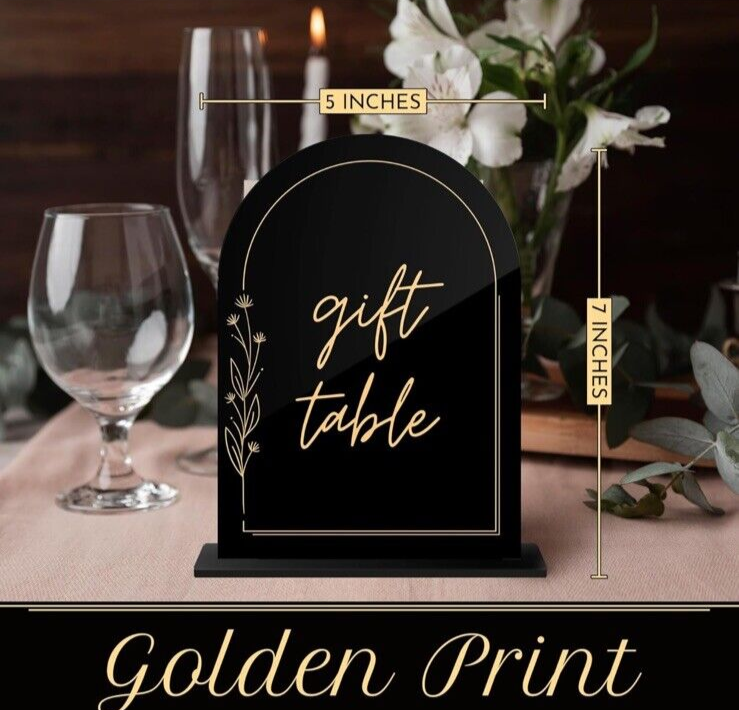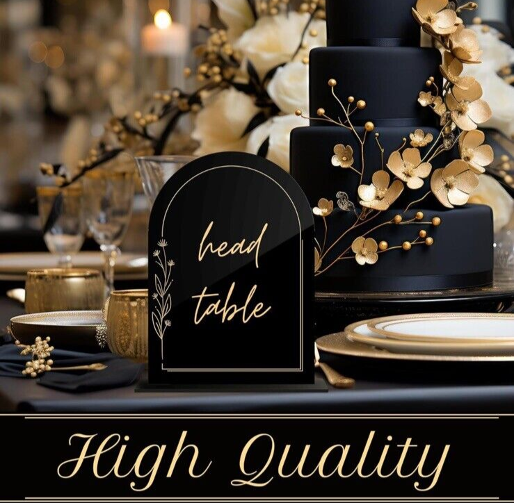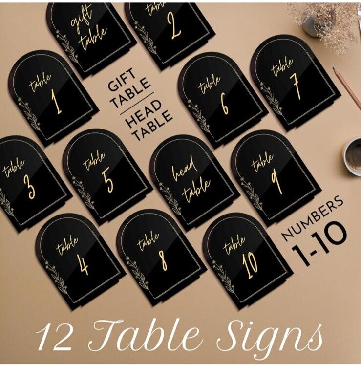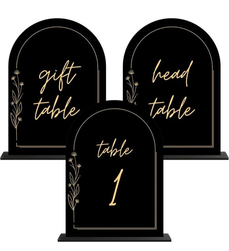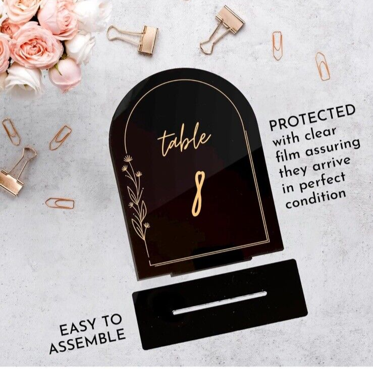 1-10 Black Arched Acrylic Wedding Table Numbers Gold Print Acrylic Table Numb...