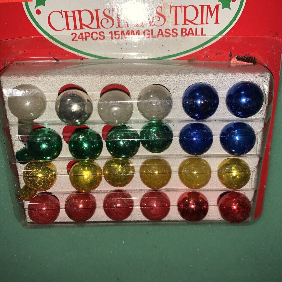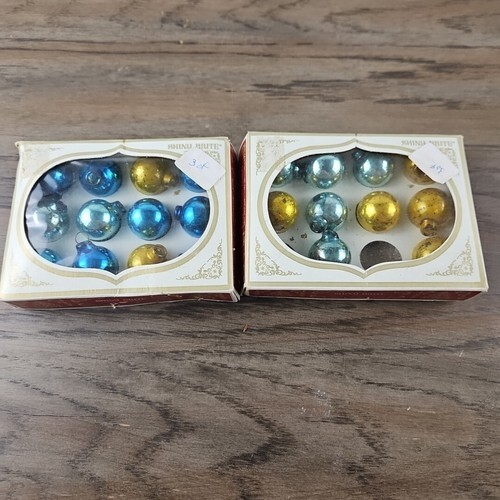 Add some vintage charm to your Christmas display with these colorful glass ornaments. The set includes 24 miniature doll-sized ornaments in a rainbow of colors, perfect for decorating a feather tree or dollhouse. Each ornament is expertly crafted with mold-blown production techniques and features festive designs like Santa's Workshop and other holiday themes. These antique ornaments were manufactured in Germany in 1970 and have stood the test of time.