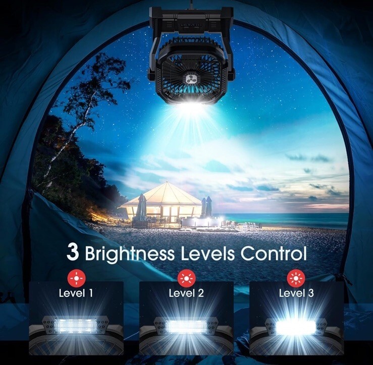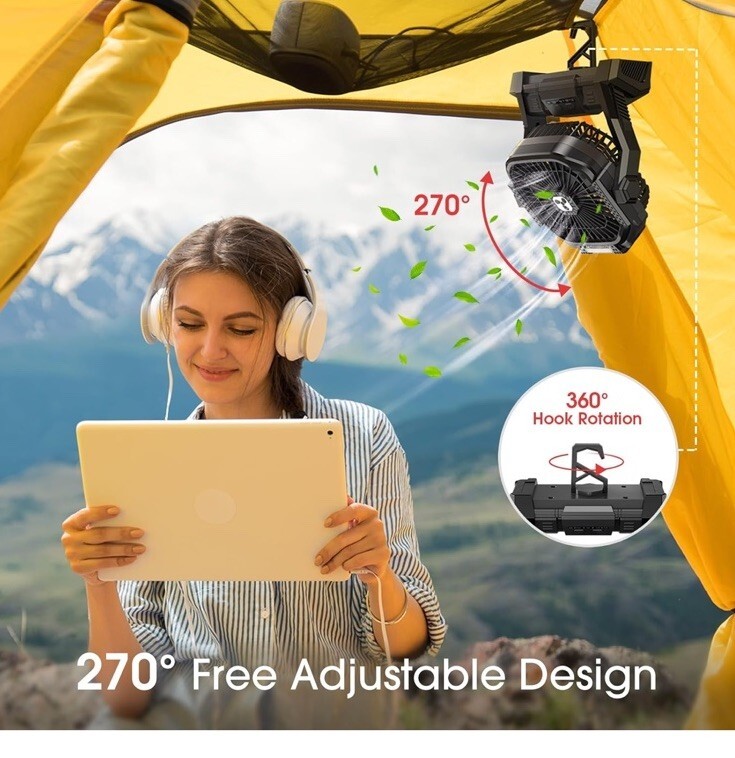 The Rechargeable Portable Fan with LED Lantern is a versatile and practical addition to any home or travel setup. With a powerful 20000mAh battery, this fan provides efficient cooling while also offering the convenience of an LED lantern. Its lightweight design and 270 rotatable head make it easy to transport and adjust to suit your needs. Featuring a brushless motor and four adjustable wind speeds, this fan ensures quiet operation and customizable airflow. Additionally, the fan is water resistant for outdoor use, making it ideal for outdoor activities. The fan's special features such as aromatherapy function, gentle reading light, and overheat protection make it a reliable choice for keeping cool and comfortable in any setting.