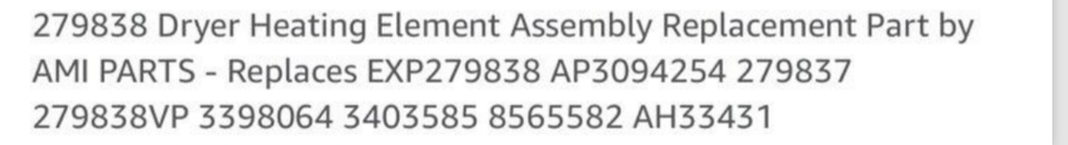 Dryer Heating Element W10724237 3403585 For and 48 similar items
