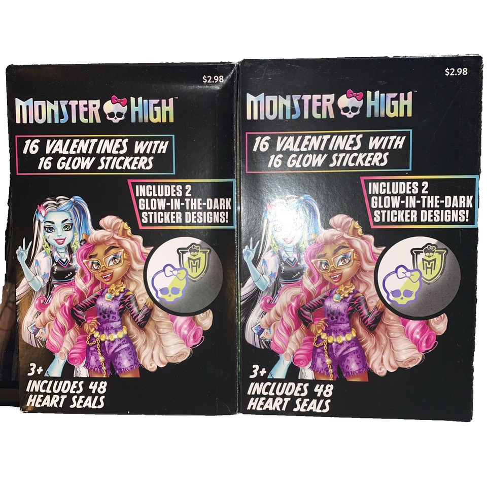 2PC Monster High 16 Valentines Exchange Cards w/ Glow In The Dark Stickers