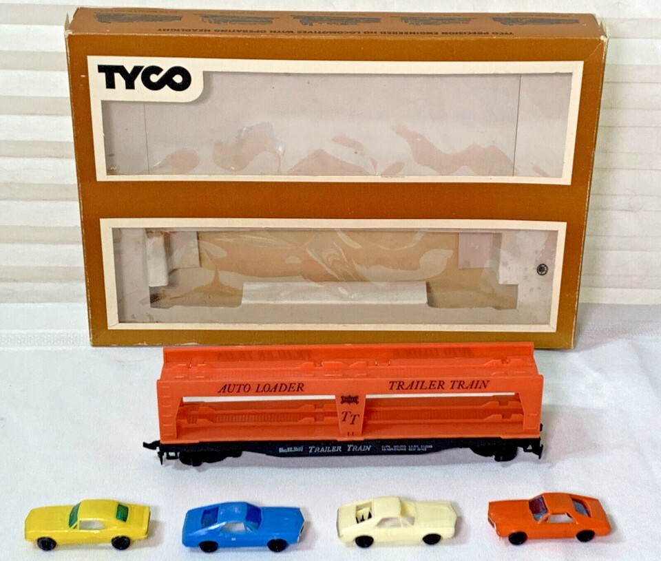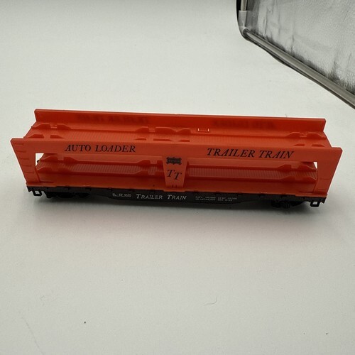 Experience the nostalgia of classic model train technology with the Vintage Tyco #349 Auto Loader. A true replica of the iconic Union Pacific Railroad flat car, this model is a must-have for any transportation-themed collection. Crafted in vibrant orange plastic, it's a durable and striking addition to your HO scale setup.