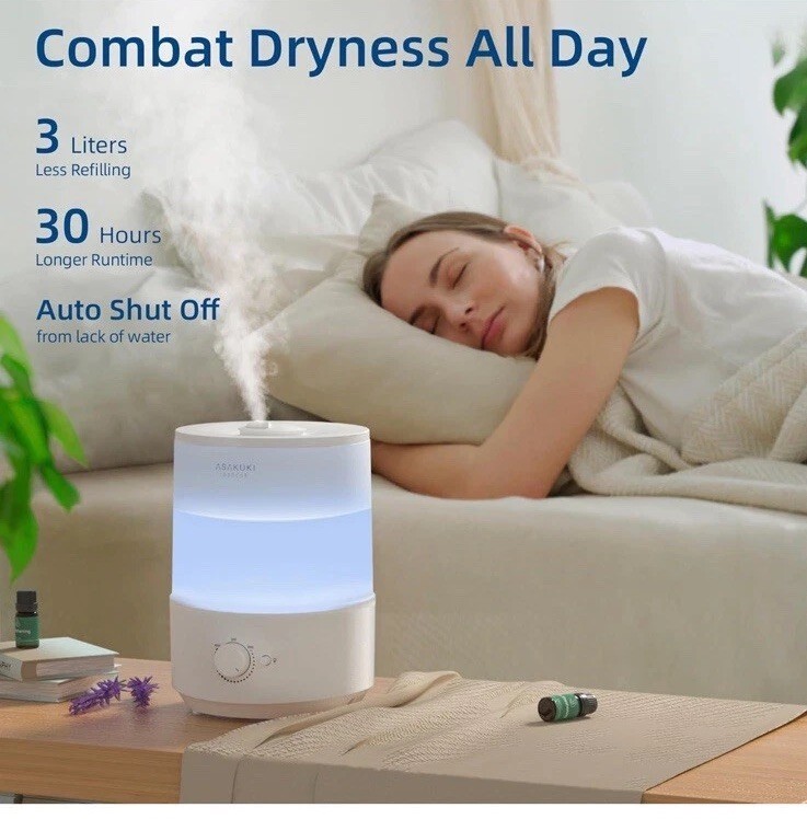 Humidifiers for Bedroom, 3L Top Fill Cool Mist Humidifiers for Baby Nursery & Pl