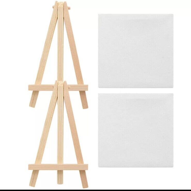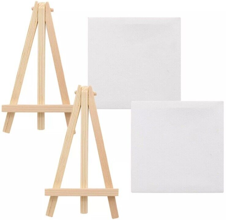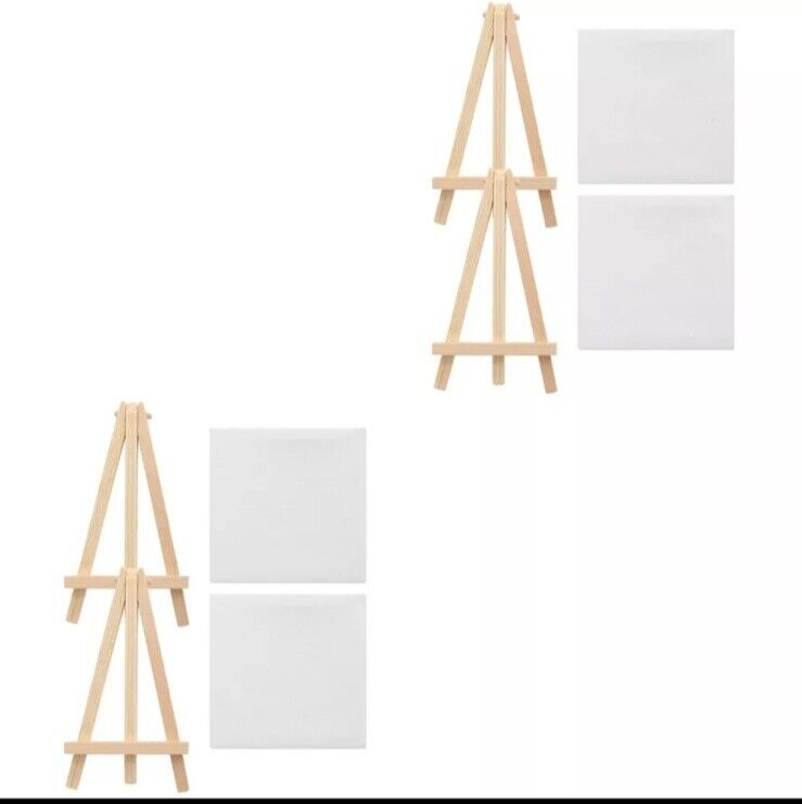 Add a touch of charm to your living space with these two sets of mini canvas easel stands. The delicate wooden decor features a non-woven fabric material and measures 10x10cm, making it a perfect addition to any room. Designed for kids and students, these mini easels are perfect for displaying small paintings or sketches. Made in China with high-quality materials, these easels are sure to impress any art enthusiast.