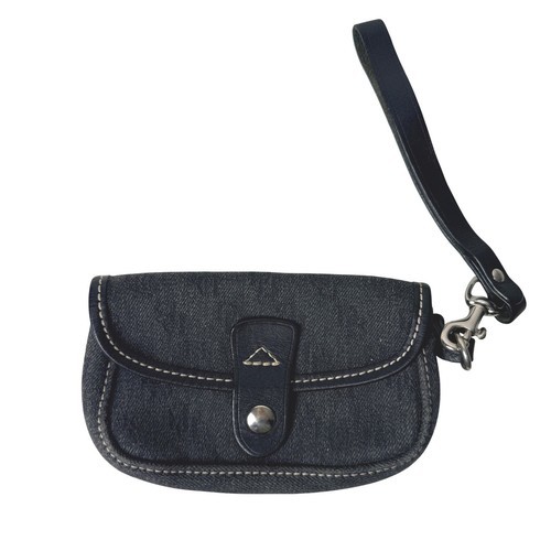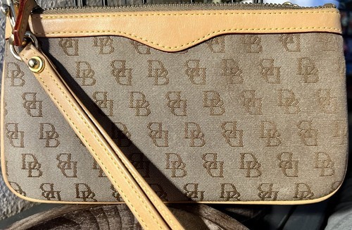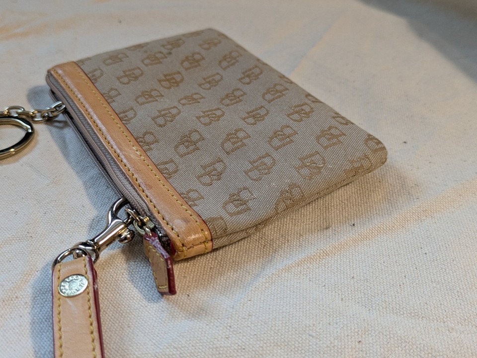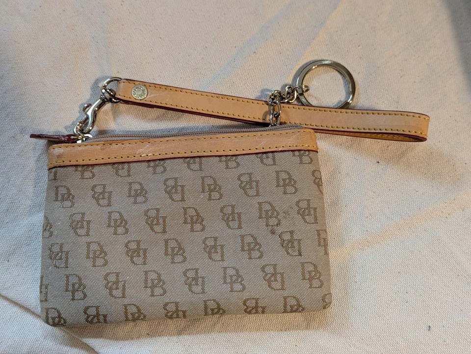 Dooney Bourke DB Wristlet Wallet keychain Canvas Leather Trim Logo 6 x 4 In