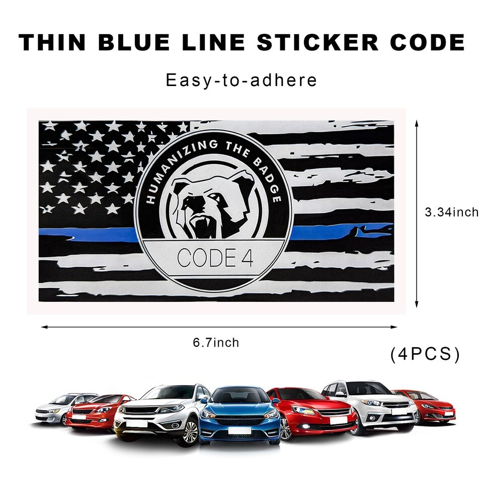 4 calcomanías de bandera de línea azul fina para automóvil Car soporte policial