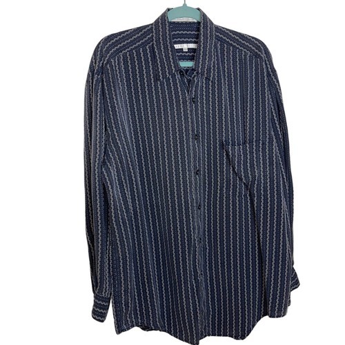 Vintage Perry Ellis Men Black Button Up Long Sleeve Shirt - Size Large
