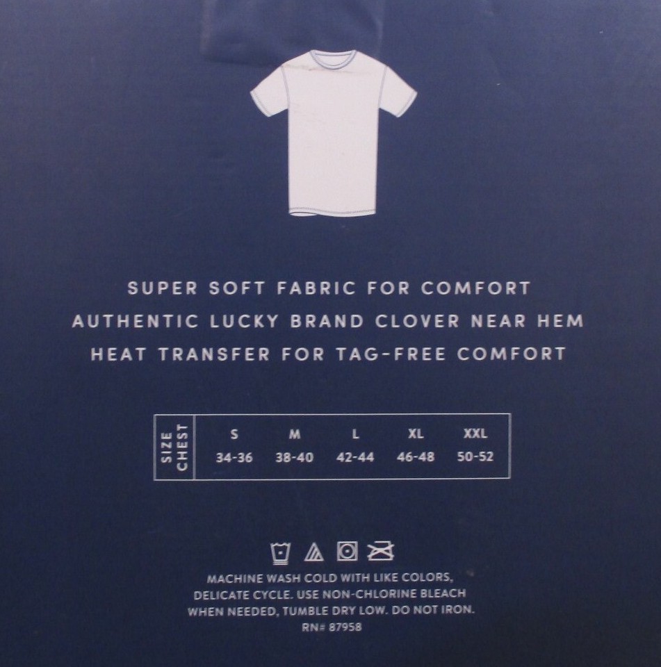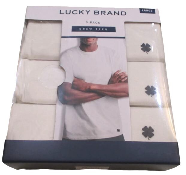 3 Genuine Lucky Brand Cotton White Crew Neck T-Shirts "Lucky You!" This listing is for 1 package of 3 T-shirts 60% Cotton / 40% Polyester.. Classic fit. Crew Neck. Super Soft Fabric for comfort. Solid white. Authentic Lucky Brand Clover Logo Near Hem. Machine washable Imported Note: Lucky Brand is in the processing of changing from 100% Cotton to the Cotton Polyester blend. If you have a preference, please let me know before ordering Size chart Chest Size S M L XL Inches 34-36 38-40 42-44 46-48 CM 86-91 97-102 107-112 117-122